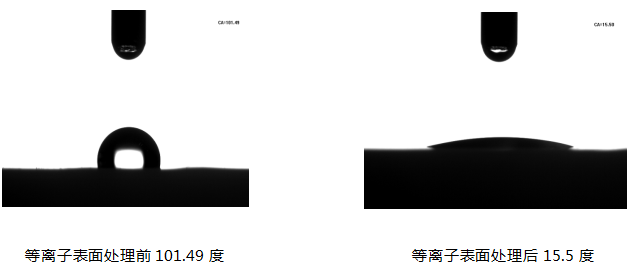三、PTFE聚四氟乙烯等離子表面處理的樣品及水滴角