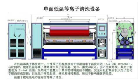 同樣的道理,在經(jīng)等離子體清洗機(jī)處理完之后,也應(yīng)當(dāng)保證材料表面受到二次污染而導(dǎo)致表面張力的衰退,以單面處理的卷材為例,由于單面處理的薄膜材料在收卷保存時(shí)會(huì)跟未處理的面有所接觸,因此在卷之前要保證另一面的清潔;此外,在處理之后也要盡可能避免摩擦,避免出現(xiàn)表面受損或粘附污漬等。而針對(duì)等離子處理的效果,材料純度也是一個(gè)重要因素。下圖是汽車(chē)動(dòng)力鋰電池鋁箔單面等離子表面處理機(jī)的結(jié)構(gòu)圖,供大家參考。
